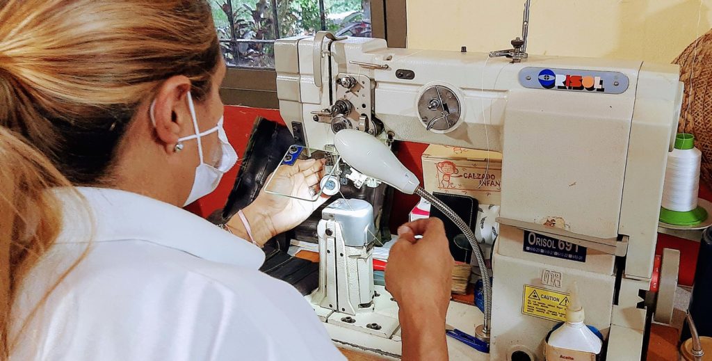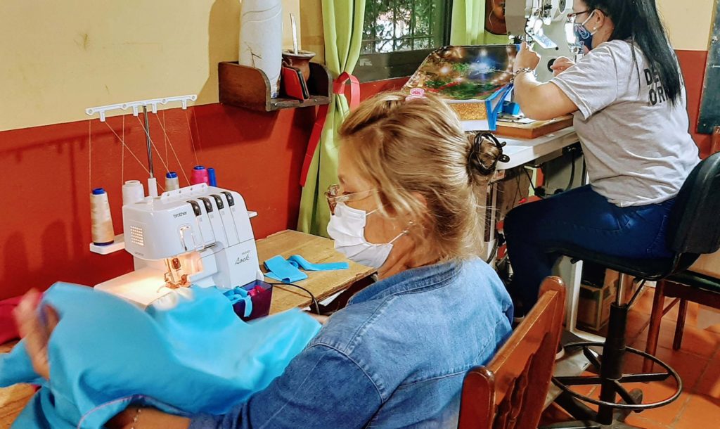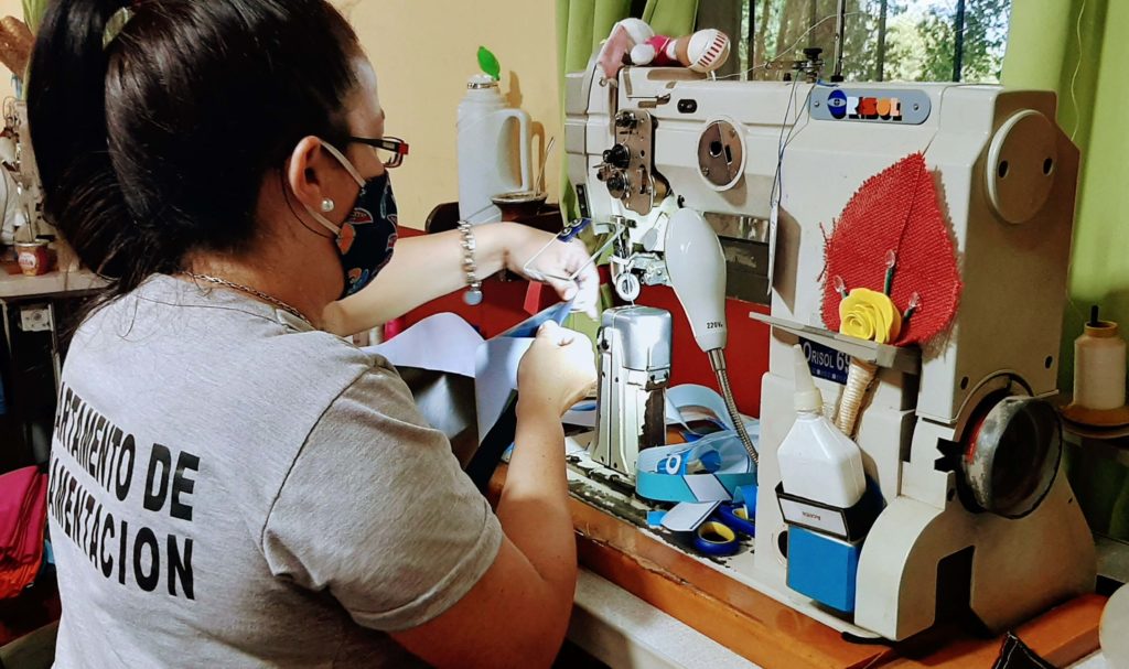 Producen desde barbijos inclusivos (transparentes para personas hipoacúsicas) hasta mochilas con cámaras de bicicletas recicladas para los niños y niñas de Eldorado. Además confeccionan antifaces y pecheras para un equipo de fútbol de personas no videntes y otras de baja visión.