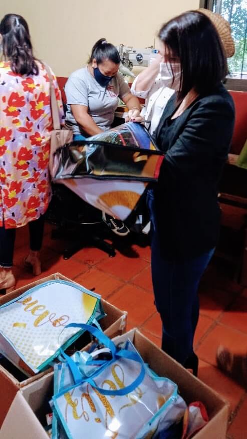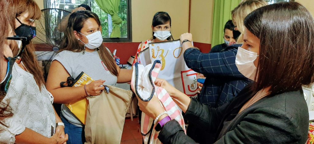 Un trabajo lleno de talento y amor para producir con materiales reciclados mochilas, cartucheras, barbijos, bolsos, pecheras entre otros para entregar a las familias de Eldorado que más lo necesitan.